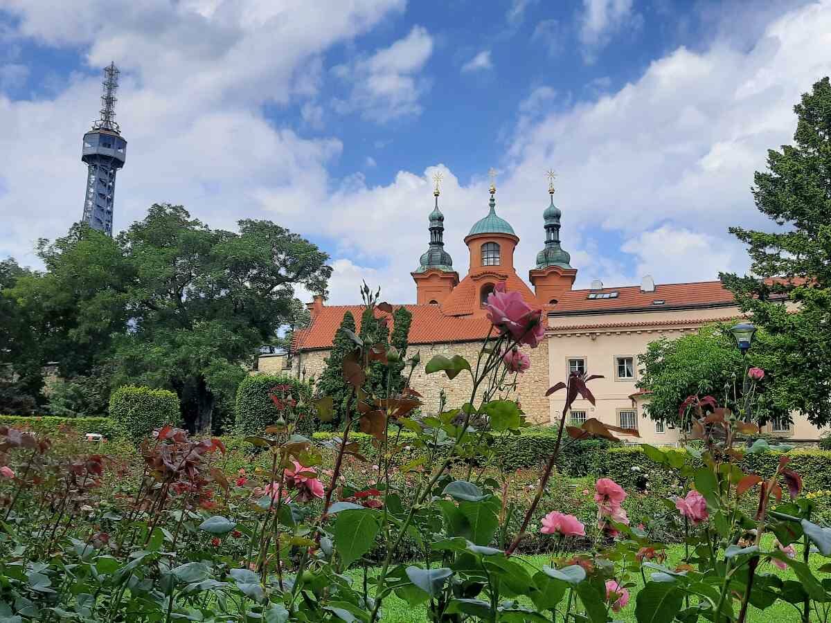 Nad zielenią wzgórza wyrasta prawie 60-metrowa wieża Petrińska (Petřínská rozhledna) wybudowana pod koniec 19. wieku na wzór paryskiej wieży Eiffla. Widoczna jest ona niemal z każdej części miasta. Na wieży znajduje się taras widokowy, na który można się wspiąć po blisko 300 schodach, alternatywnie wjechać windą.